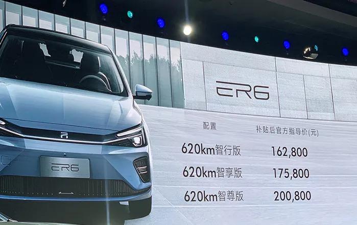新车全系标配了倒车影像、定速巡航、无钥匙进入/启动、远程启动、真皮方向盘、皮质座椅、14.3英寸中控屏幕、矩阵式LED大灯、全车双层隔音玻璃、自动空调等丰富配置,可以看出,ER6的定位是偏向于品质、舒适的用车体验。