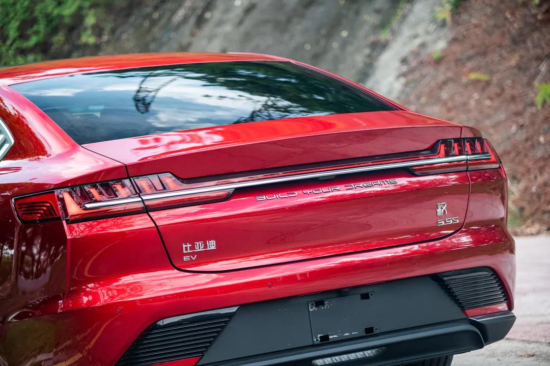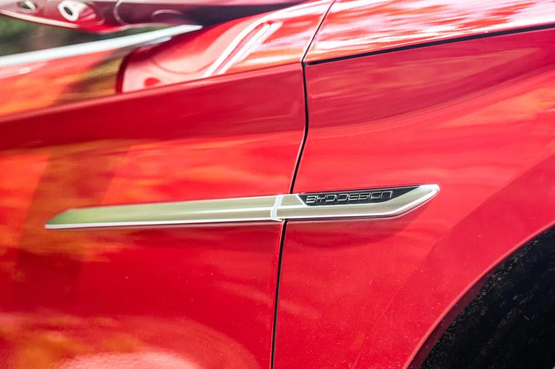 在设计上吃过亏的比亚迪现在自然不会出现虎头蛇尾的情况,汉的车尾比起前脸要更加复杂一些,标志性的贯穿式尾灯也得以应用。现在比亚迪新出的车型已经弱化了原来的BYD logo,取而代之的是各自车型的名称logo以及BUILD YOUR DREAM的英文标识,从设计上来说这样的改变会带来更好的视觉效果。