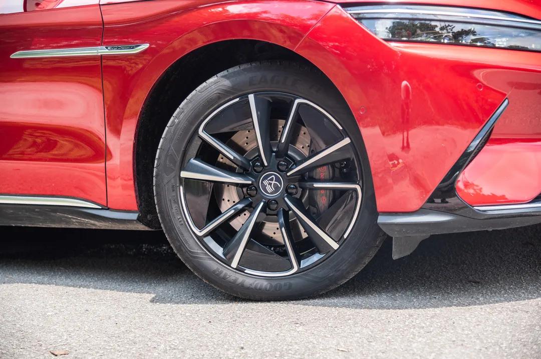 比亚迪在轮胎和刹车这里一直很愿意下本,来自brembo的刹车卡钳以及打孔通风盘能够带来足够的制动力。对轿车来说,19英寸轮毂已经足够大气,再往上除了徒增成本外并没有多大用处,尺寸为245/45 R19固特异EAGLE F1轮胎市售价1000多元一条,更换成本并不算高。