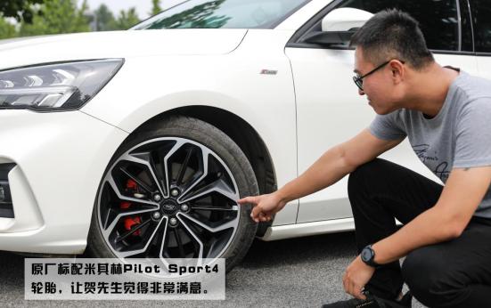 在编辑试驾体验过程中,贺先生一直非常强调福克斯ST-Line原厂标配的米其林Pilot Sport4轮胎,毕竟这款轮胎售价高,一般情况下都是用作后期改装升级的产品,性能广受好评。作为一款运动型轮胎,也非常符合福克斯的运动基因。编辑在进行各项测试的时候,确实也能够感受到这款轮胎非常好的抓地力。