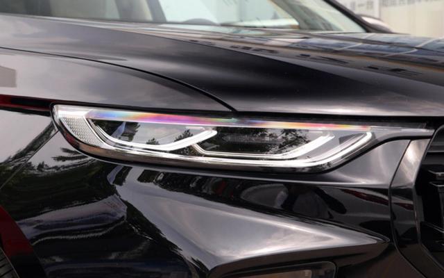 大灯组造型比较细长,采用的也是这种分体式设计,远近光被藏在了纤细的日行灯组下方,光源则全部采用的LD形式。