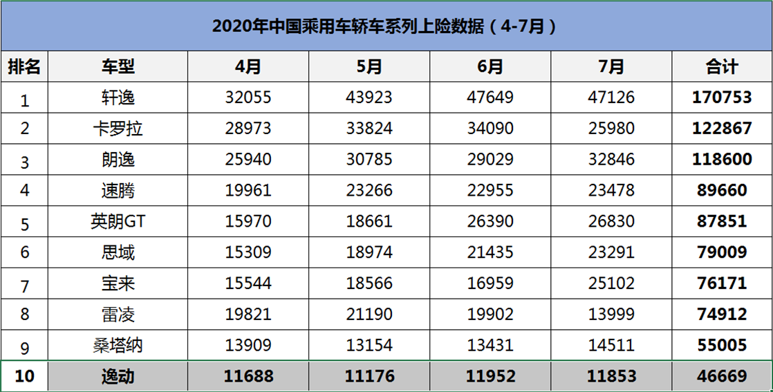 回顾逸动PLUS自3月上市以来的表现,此次实现前10的突破也并非偶然。3-7月份间,逸动PLUS连续破万,每个月都保持着稳定的增长态势。而且,在中汽中心发布的2020年4-7月上险数据中,逸动系列自4月以来,月均上险数均在万数以上,同样是中国乘用车轿车前十名中唯一一位中国“选手”,而且与乘联会数据所差无几,两项足以证明逸动PLUS最终为何能成为中国品牌轿车新车销量王。