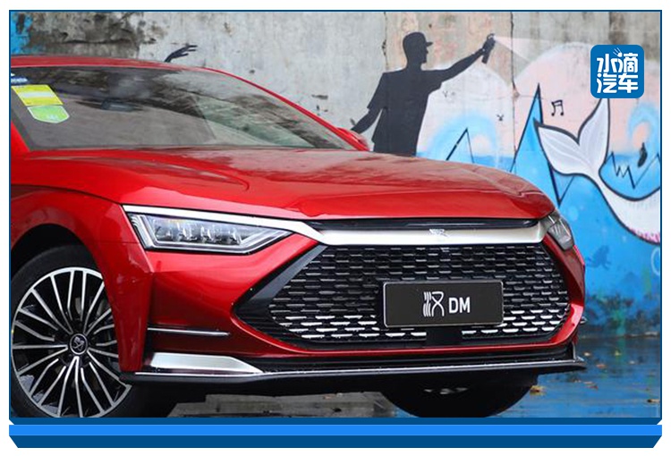 作为一台B级车,汉 DM定位高性能、豪华产品。外观上,新车采用家族化“Dragon Face”设计,不同于汉 EV封闭式前脸,汉 DM格栅为圆润的六边形形状,黑色主题嵌入交错的镀铬元素,上方“飞翼”形状的镀铬饰条延伸至矩形大灯上方,增加俯冲视觉感。大灯内部的竖置LED光源还加入了蓝色光束,十分新潮。