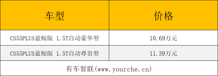 8月17日,长安CS55 PLUS (配置|询价)蓝鲸版和锐程CC蓝鲸版通过网络直播活动正式上市,其中CS55 PLUS蓝鲸版共推出2款车型,指导价10.69万-11.39万元,锐程CC蓝鲸版共推出4款车型,指导价9.79万-11.99万元。