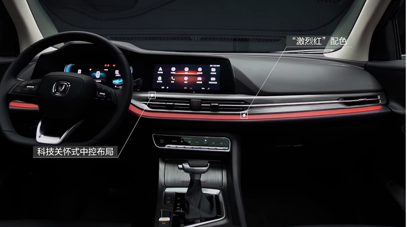 内饰部分采用深色配色,并由一条红色饰条贯穿整个中控台,使车内的运动氛围更加浓厚。此外,新车还配备了全液晶仪表和10.25英寸中控大屏,和全新设计造型的换挡杆,以及D字型平底多功能方向盘,使车内的科技感和运动感有所提升。