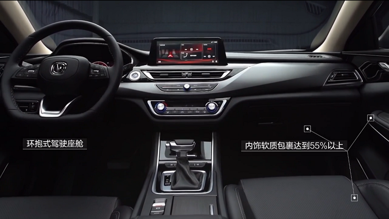 长安锐程CC蓝鲸版的内饰整体造型与普通版车型保持一致,在细节部分进行了升级,新车同样换装了全新的D字形平底多功能方向盘,以及全新造型的换挡杆,再加上全液晶仪表和10.25英寸的中控屏,使新车车内的高级感有所提升。