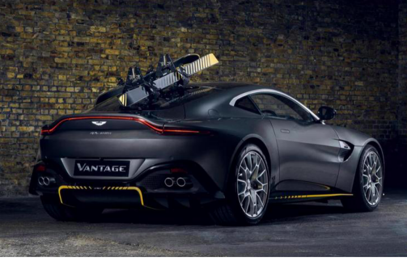 和DBS的外观相比,Vantage就显得友好许多了。虽然都穿着灰色战袍,但前唇和侧裙却选用了柠檬黄色的饰条进行点缀,因为黄色饰条在电影里,可是暗示该车是带有“火箭助推器”这一功能的。虽然实车没这配置,但为了还原剧情,在限量版车型上还是将其保留下来了。