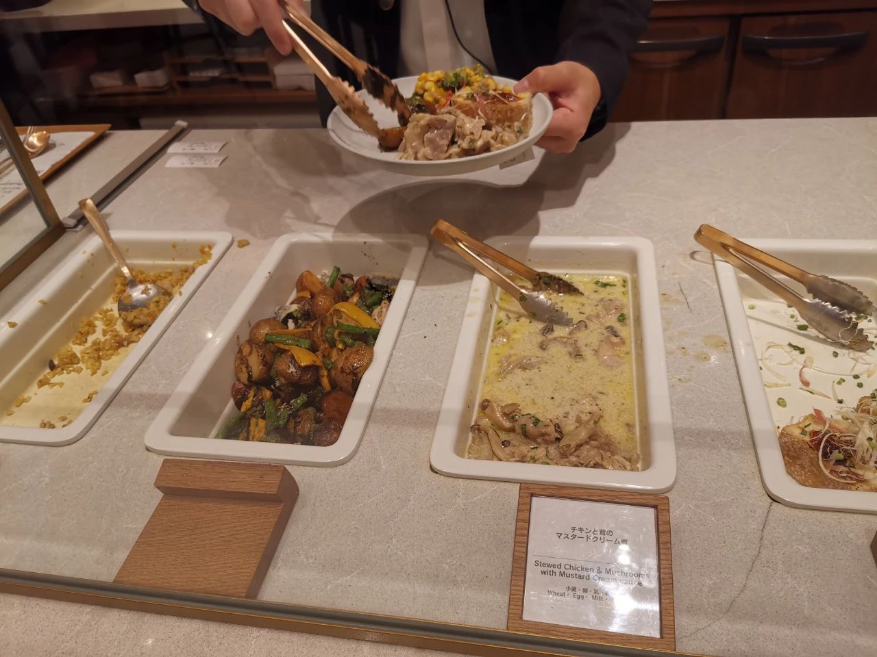 简餐的价格不贵,并且还提供免费的苏打水与矿泉水。990日元费用里包含四个小菜,一份面包与一杯咖啡 -一顿非常健康的午餐。另外似乎这家店主打的一些甜品也非常诱人。