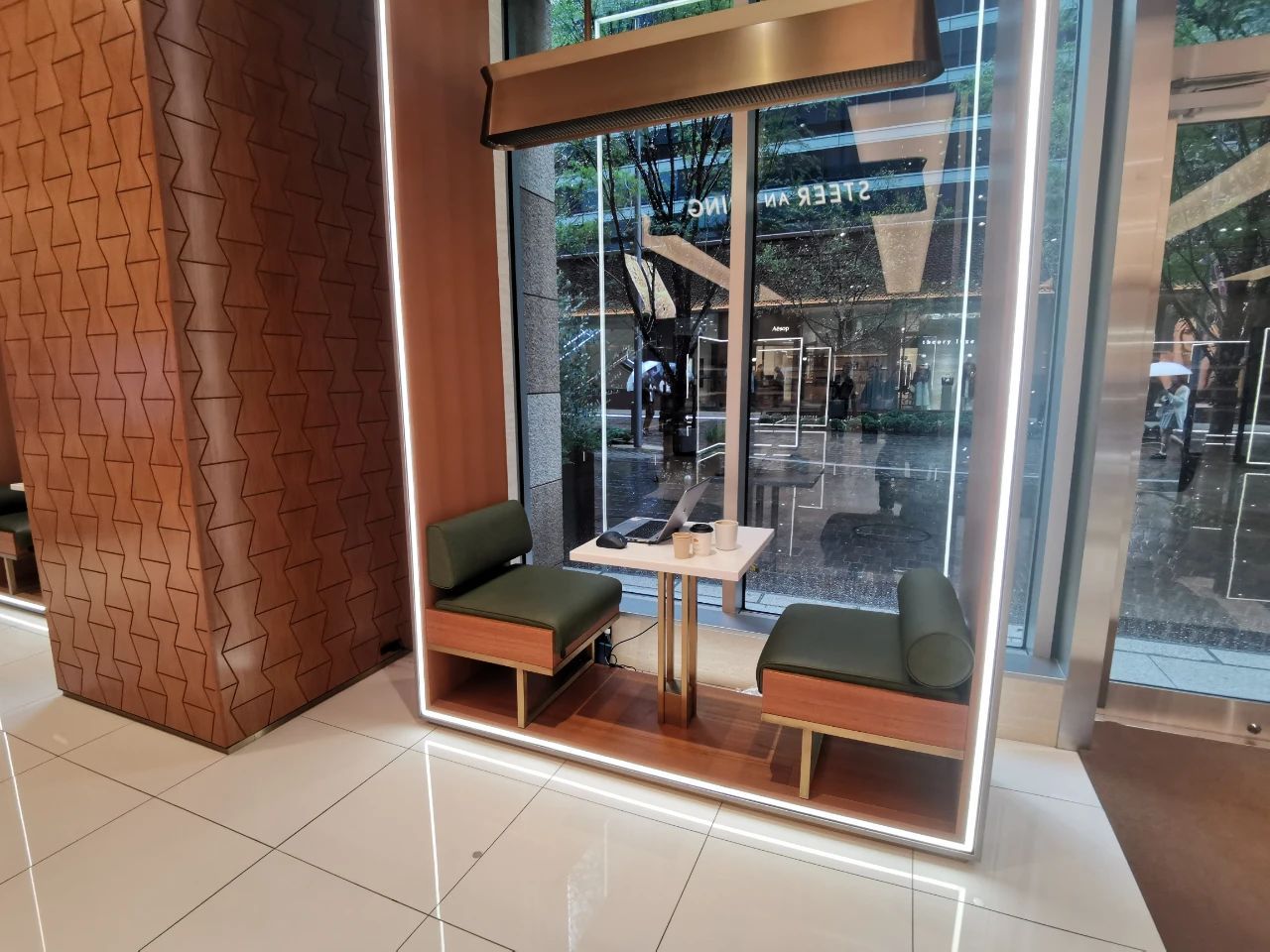 坐在橱窗里,一边是繁华的东京街道,而另一边是雷克萨斯的两台展车 - 这样的体验,确实是非常独特的。