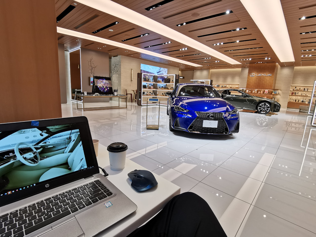 但消费者也能看到Lexus全系列的产品 - 在旁边的大屏幕上,你可以通过虚拟渲染的方式,仔细观察所有雷克萨斯的产品细节。