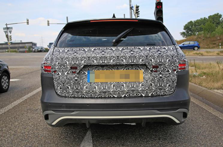 车身侧面,侧面来看变化并不明显,修长的车身保持了现款捷豹XF旅行版的优雅气质。尾部设计上或将针对尾灯组进行优化,重新布局尾灯组内部LED光源。车尾部的保险杠也没有采用伪装,排气或将会采用双出布局。