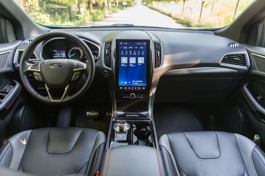 福特锐界改款后,车内的变化较小,最明显的变化是换装了12.8英寸竖向布局的中控屏,使锐界的科技感有所提升。锐界的内饰设计中规中矩,整体造型比较粗犷,高级感稍逊,但是车内采用大面积的软性搪塑材质,用料还是不错的。