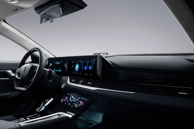 内饰方面,内饰采用了一套全新的家族式内饰风格,内饰布局整体偏向驾驶员一侧,使驾驶员的操作更加便利。中控台采用液晶仪表盘+中控的上下液晶控制屏三屏联动设计,车内科技感十足。方向盘则采用双辐平底式设计,并进行了镂空处理,同时也营造出悬浮式的视觉效果。座椅采用2+3布局,并对后排提供有三头枕设计,此外新车还配有全景天窗,支持两段式开启。此外,车内还增加很多的镀铬饰条、菱格形金属饰条、钢琴烤漆面板以及皮料的运用,视觉效果还是比较出色的。