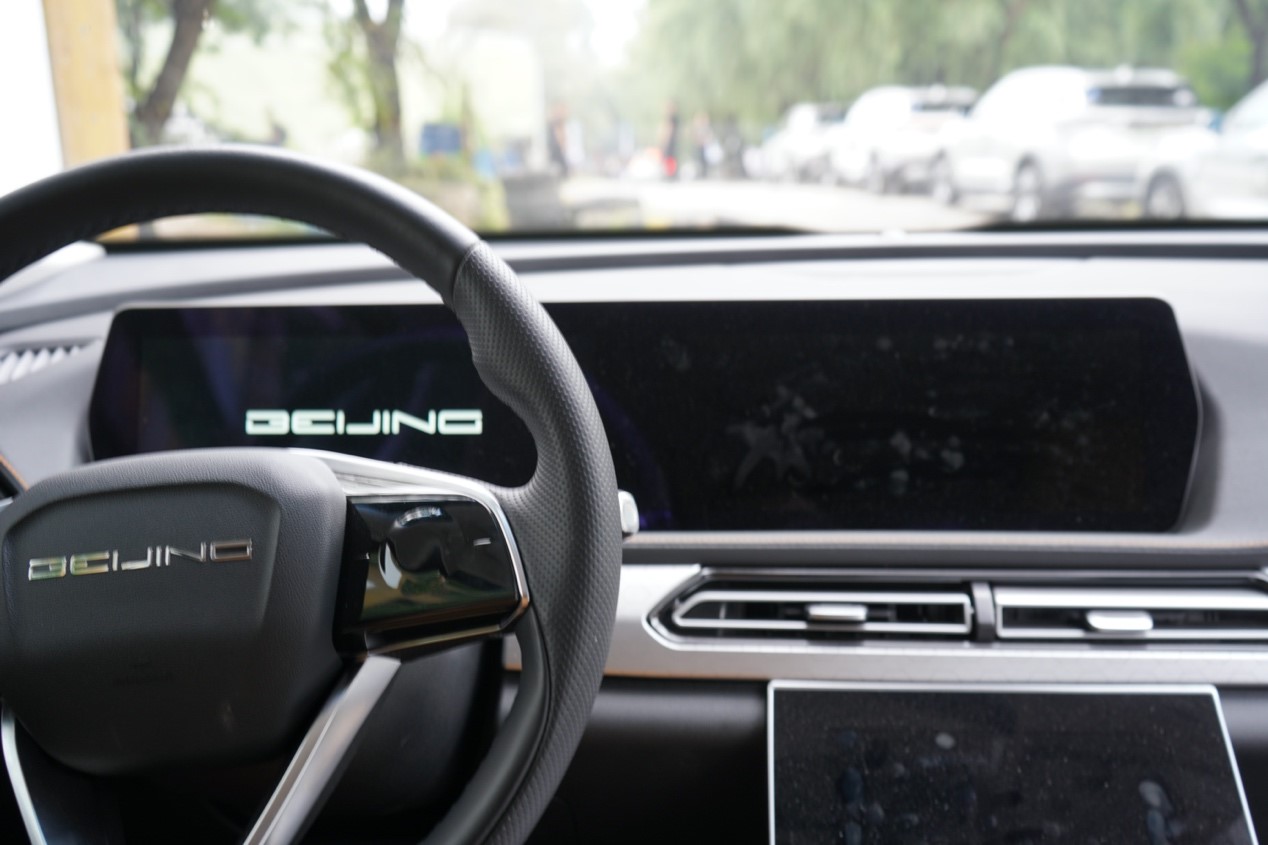 来到尾部,整体看上去饱满并富有层次感,微微上翘的“小屁股”搭配贯穿式流水尾灯组,加以镀铬饰条点缀,尾灯组上方中央镶嵌了“BEIJING”的字母品牌标识,搭配了熏黑式与镀铬材质的后保险杠,与车头相呼应,并采用了隐藏式双边共出的排气布局,突出了新车的运动属性。