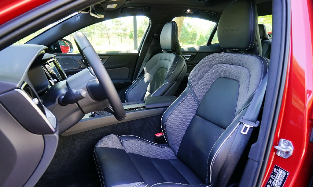 比如说S60 T5的车内座椅很有型,尤其是前排的包裹感和支撑效果都不错,调节功能包括座垫、腰部甚至腿托,总之很容易找到想要的支撑。