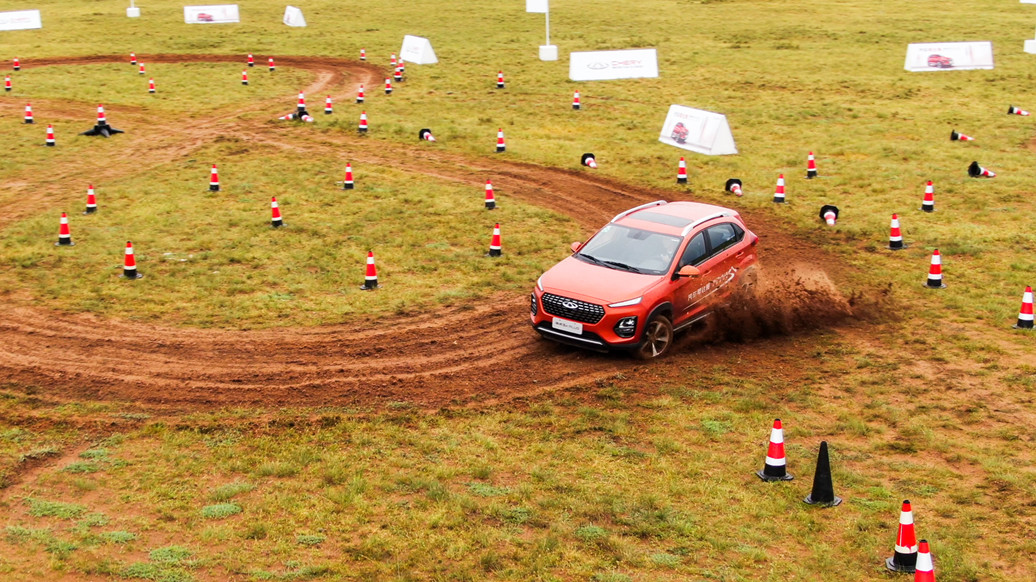 在因为雨水而泥泞的草原上,瑞虎3x PLUS在8字绕弯、S型行驶、直线加速等项目上都表现优异,不仅没有被一直下雨的天气击退,反而更添试驾乐趣。