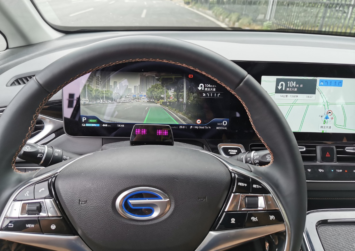埃安V的AR实景导航系统融合了业内最先进的AR增强现实技术,对地图数据、车辆数据和视觉数据进行了叠加融合。其内置的高德4.0导航系统,具备了海量地图信息,道路里程覆盖820万公里+,道路属性信息400种+,实时路况覆盖全国所有高速及360城+,偏航高发城市复杂场景路测10000公里+,并有着分钟级道路信息更新发布。