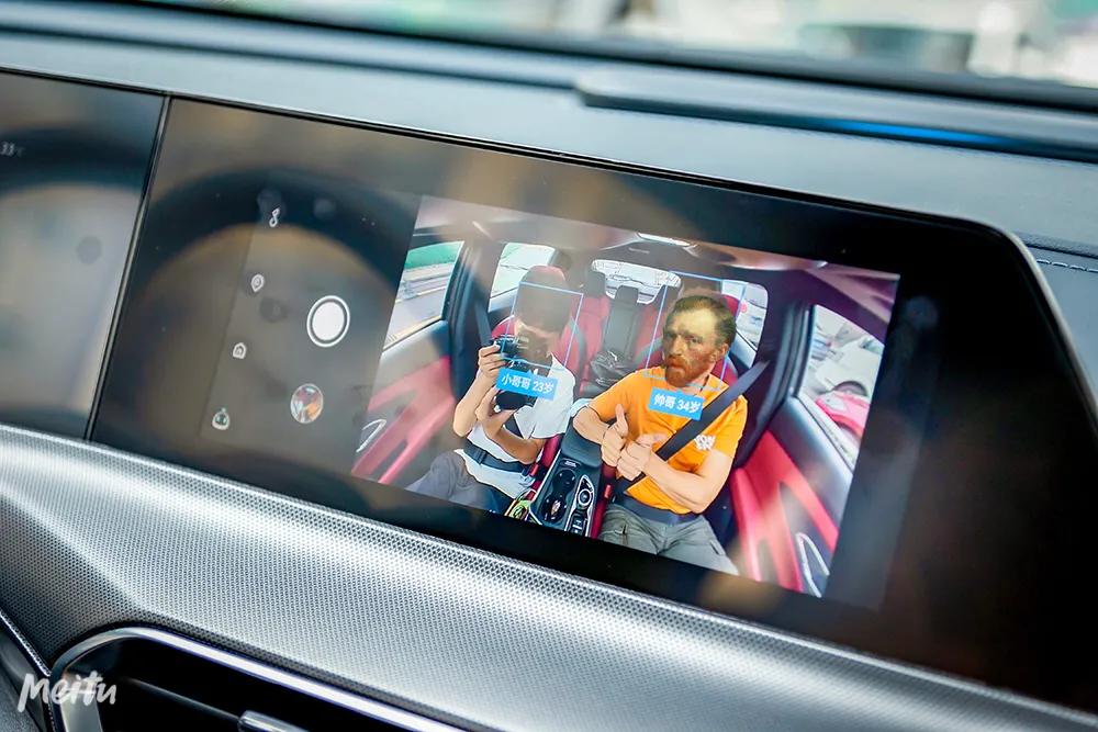 更有趣的是,我们还可以通过内后视镜旁的摄像头进行车内合影留念。虽然这个功能看似无用,但当你堵在自驾游的路上时,就会发现它的好处了,因为真的可以打发无聊时光(别问我为什么知道)。