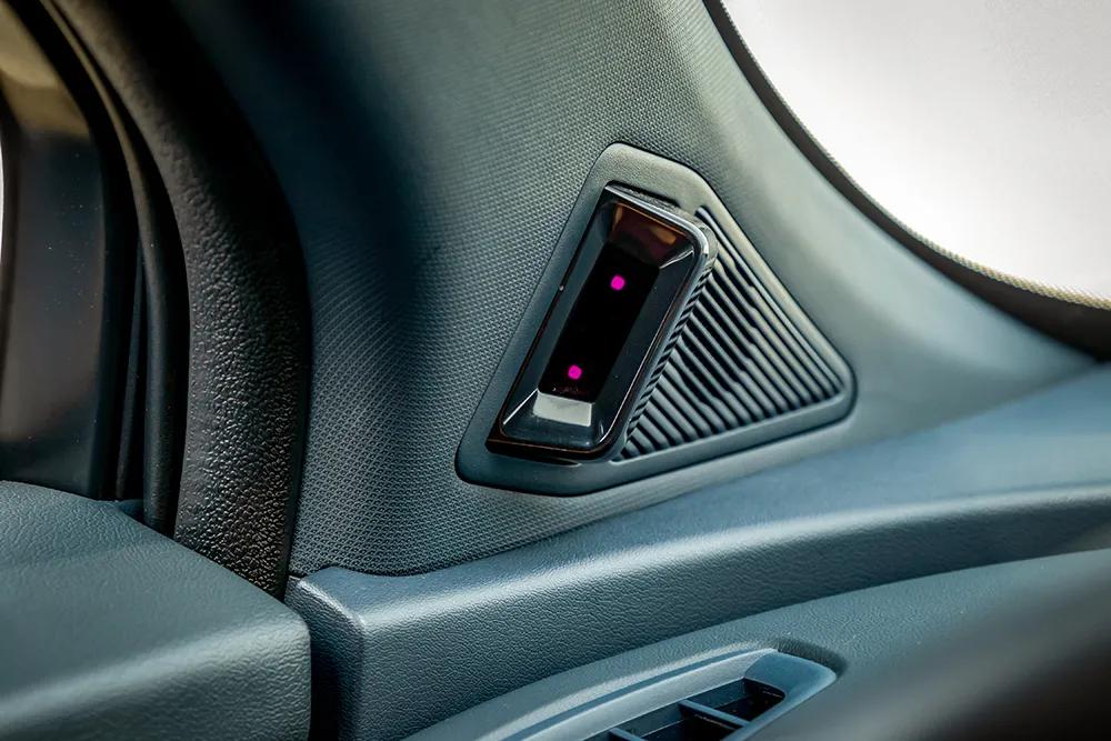 A柱上的人脸监控装置则十分有趣,不仅可以自动识别人脸将车内设置进行个性化调整,还可以感知车内场景并进行响应的操作。比如当我抽烟时会自动开窗通风,接电话时会自动调低音乐音量,疲劳驾驶时甚至会自动开启最大冷风播放嗨歌让我重振精神等等。