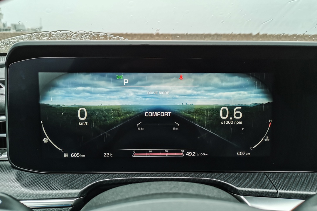12.3英寸全液晶仪表显示程度十分细腻,并且提供古典、智能天气、多维动态空间共三种主题可选,其中智能天气可通过车辆网络获取实时天气,而显示在液晶仪表中,细节处理十分用心;古典主题根据不同驾驶模式也会有不同颜色和样式展现。