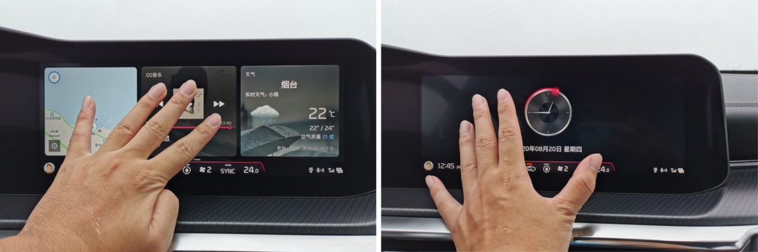 凯酷的车机系统还有一大亮点,可支持多点触控指令。通过三指同时按压屏幕,可打开功能界面;四指按压可打开主界面;五指按压可完成息屏操作。通过手势控制车机的方式,上一次是出现在宝马上,可通过手指控制音量。此次出现在凯酷上的手势控制,也是同级中少有的设计,让凯酷的车机在本就全面的功能性上,再次增添亮点,达到越级的体验。