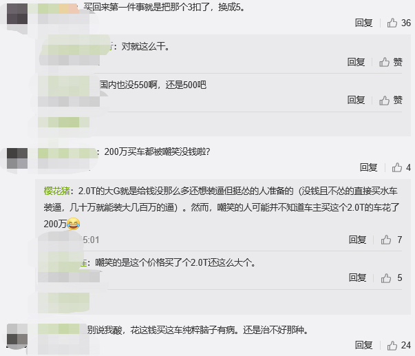 大概意思是买2.0T的奔驰大G的人,就是人傻钱不多还装逼,那不就是渣男中的渣男?