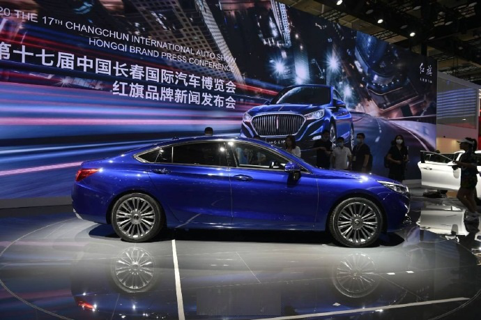 外观方面,新车延续了现款车型的造型设计,前脸采用直瀑式进气格栅,以及醒目的红旗分段饰条设计,搭配上方“红旗”立标,整体造型具有气势。两侧大灯组采用开眼角样式设计,配以下方LED日间行车灯,点亮效果十分醒目。