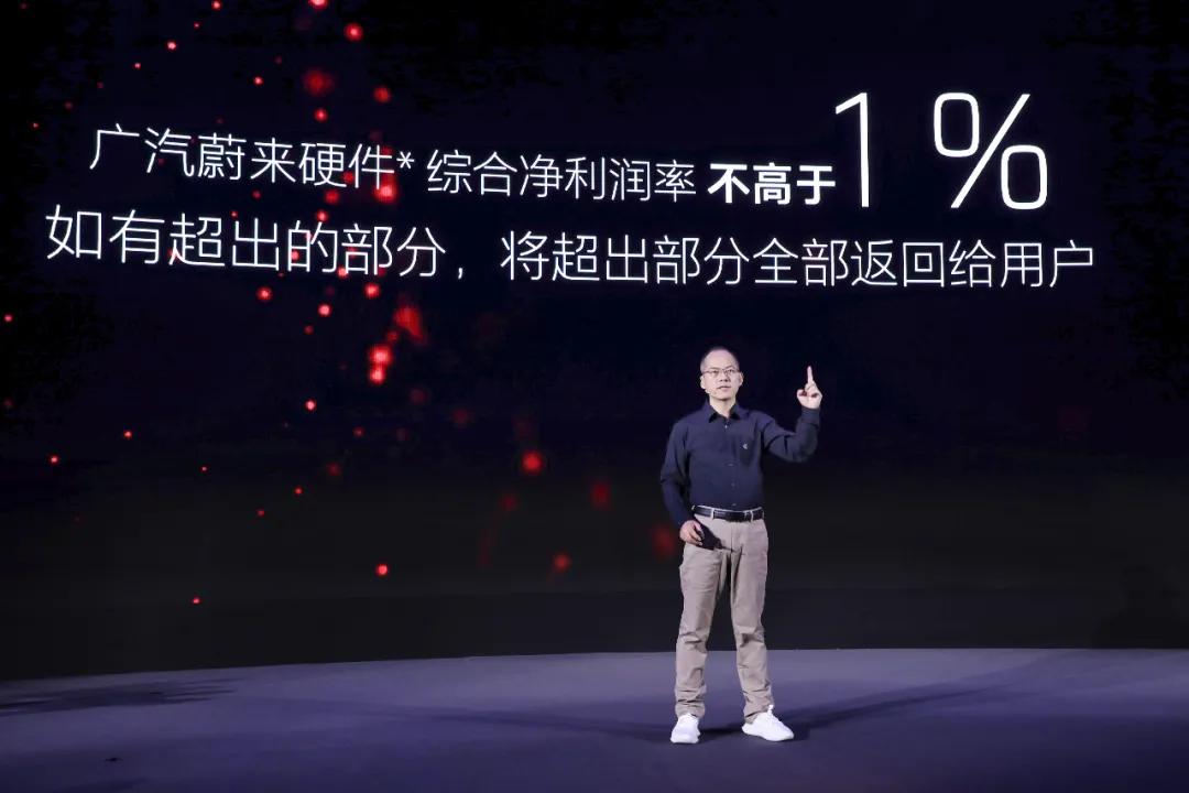 公开后,廖兵直接给出一个承诺:广汽蔚来硬件的综合净利润率不高于1%,否则将超出部分全部返回给用户。