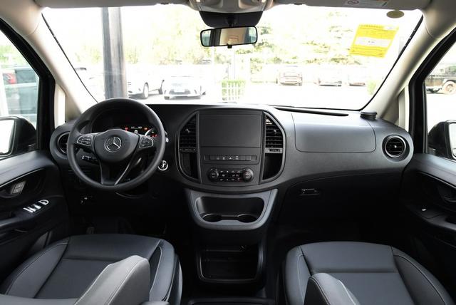 车内部分延续了上一代车型的布局,看起来憨憨的不过好在设计和布局都偏向于实用,而且这款方向盘也延续三年前奔驰轿车的造型,虽然样式足够好看,但是好像又有点跟威霆这个大身材不太搭,显得稍微秀气了一些。