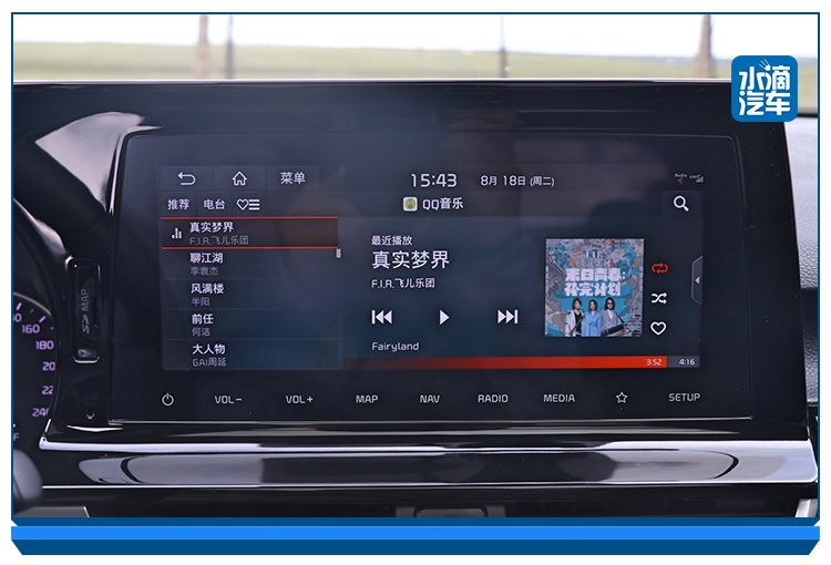 另外,KX3的车机系统还内置了QQ音乐,驾驶员可以用语音来指挥它播放歌曲,这对于自驾游赶路的司机来说绝对是个福音,尤其是当车上其他人都睡着了的情况下,能陪伴司机的就只有音乐了。