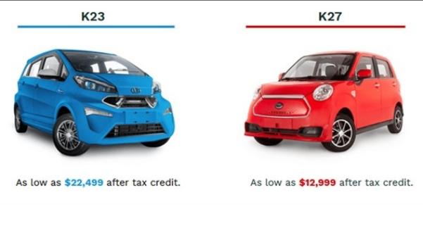 售价12999美金的康迪K27属于紧凑型电动汽车,可容纳四位乘客,配备了17.69kWh锂电池,续航里程为100英里(约160km),电机最大功率为20kW,最高时速为101km/h。