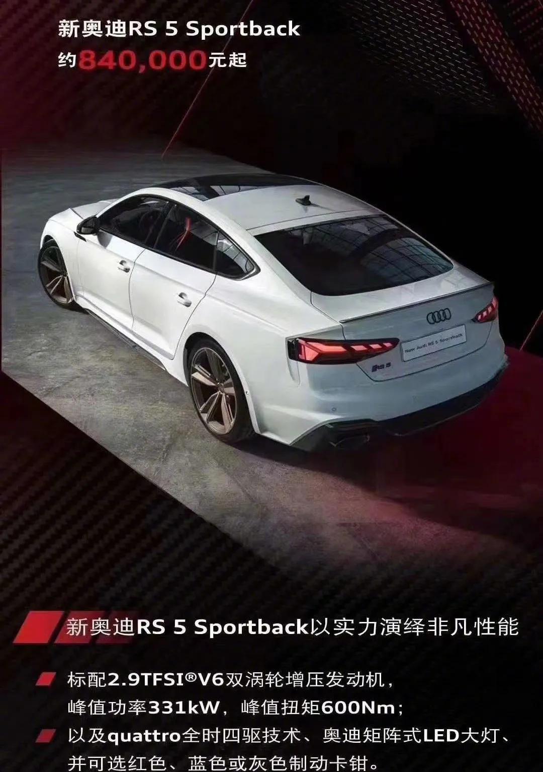使用2.9T动力系统的新车,还有新款RS4和RS5,价格维持在老款车型的水准,主要变化在于同步了新款A4和A5的细节设计。