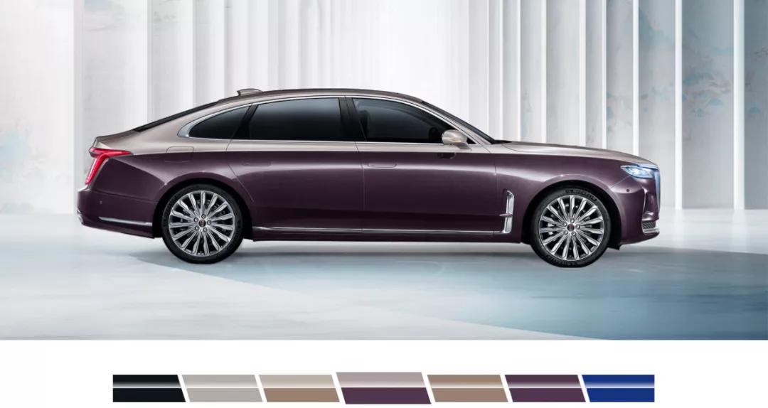 红旗H9提供7种外观配色,包括双色和单色的颜色方案,此外,根据不同配置车型,H9配备的轮毂尺寸也有所不同,最入门车型轮毂尺寸为18吋,其余车型则为19吋或20吋。