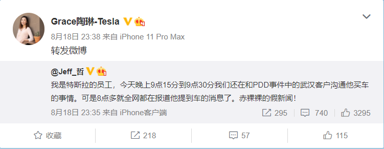↓ 拼多多团购特斯拉事件发酵 ↓