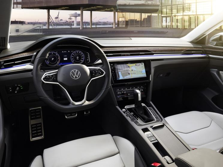 外观方面,作为中期改款车型,新车外观造型并未进行大幅度设计调整,仅是针对细节部分进行优化升级。前脸采用尺寸更大的进气格栅设计,并与前大灯组进行了一体化设计,使前脸更为时尚大气。雾灯区域也有所增大,车辆的运动风格更加鲜明。尾部方面,车尾采用了全新的小尾翼设计,再加上双边共四处尾排的装饰,搭配上黑色外后视镜和后扰流板,整体更加运动。尺寸方面,新款CC长宽高分别为4865/1870/1459毫米,轴距则同为2841毫米。新猎装版车型长/宽/高则分别为4869/1870/1459毫米,轴距达2841毫米。