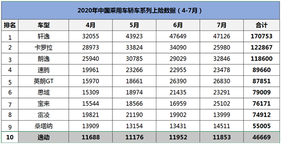 即使是今年4-7月的上险数据,逸动PLUS也同样位居中国品牌轿车单品销量第一。