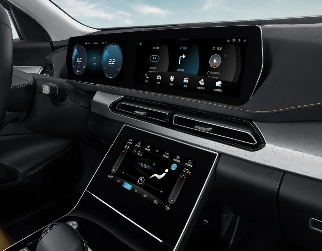此外,12.3英寸的双联屏+触控屏组成的沉浸式三屏联动系统可不是“闹着玩的”,它的功能甚至会让你怀疑是不是在玩赛车游戏。科幻感十足的AR实景导航系统,不仅能够显示前方的实时路况,更能以AR的方式,标注正确的行车道路,甚至能够通过AR模拟路牌,让驾驶员提前预知下一个路口需要选择的车道。