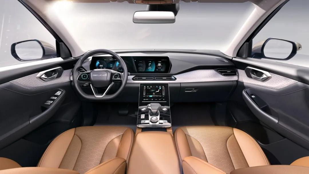 近看,BEIJING-X7的隐藏式智能感应门把手,也让乘客在上车之前就已完成“第一层仪式感”。全系标配的银河系全LED智慧光源系统,搭配波谱律动的车内氛围灯,BEIJING-X7的现代感从车外延伸至车内。