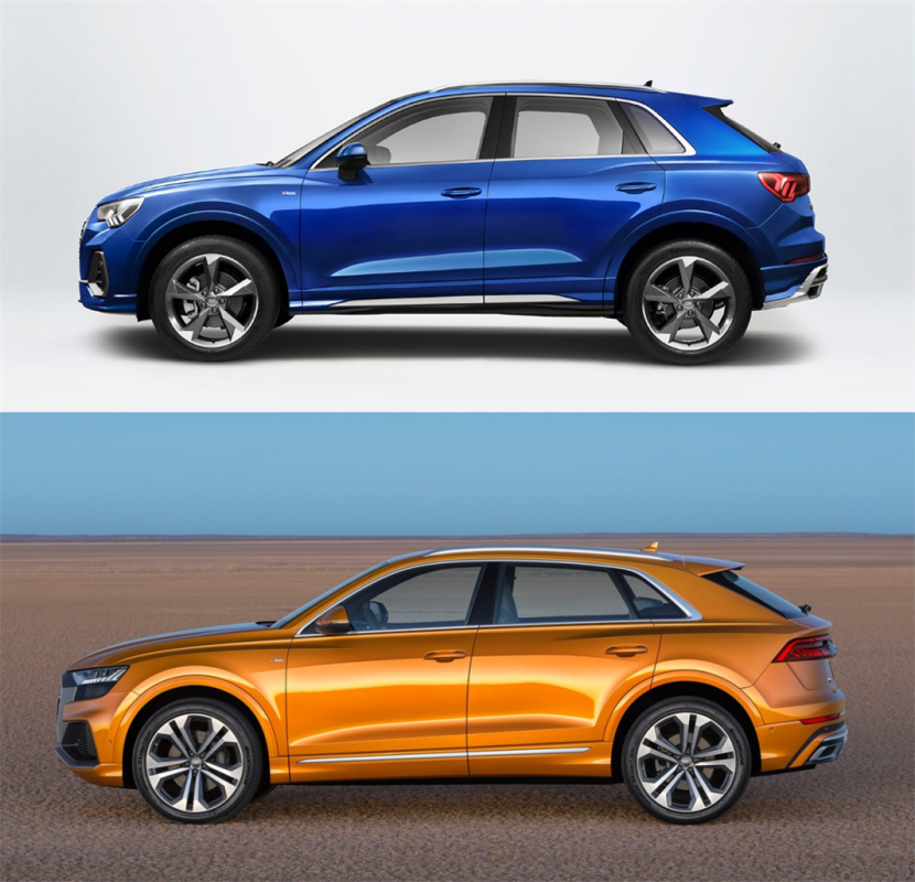 不过Q3在车身尺寸和动力配置上都和Q8有着天壤之别,毕竟一个是入门一个是旗舰嘛。