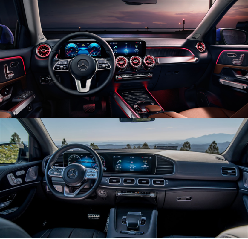 内饰上,GLB也使用了双联屏设计,比GLC的老款内饰更豪华,和GLS的双联屏设计算是“套娃”。