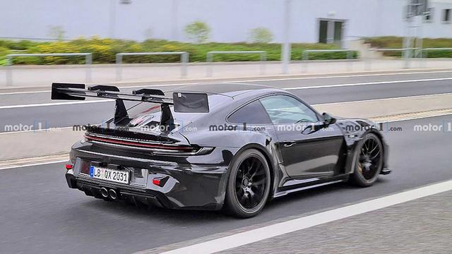 全新保时捷911 GT3 RS车尾部采用了巨大的固定式尾翼,搭配中置双出排气设计,并结合排气两侧分段式导流板,视觉效果更具侵略性。据了解,新车巨大的尾翼仅是为了测试而安装的临时部件,正在模拟未来正式造型后扰流板的下压力。动力方面目前还没有相关消息,我们将会持续关注。