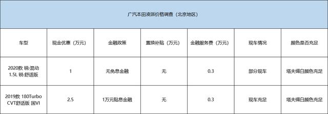 注:此价格调查仅针对北京地区广汽本田凌派进行,为近期有购车意向的北京消费者提供适当参考。
