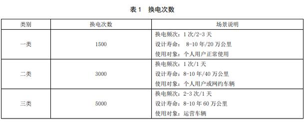 通过动力电池的技术差异和车辆实际运行场景以及运行数据,分别规定了5000次(卡扣式)和1500次(螺栓式)的最低换电次数要求,确保用户在车辆设计使用寿命内换电时的安全性。