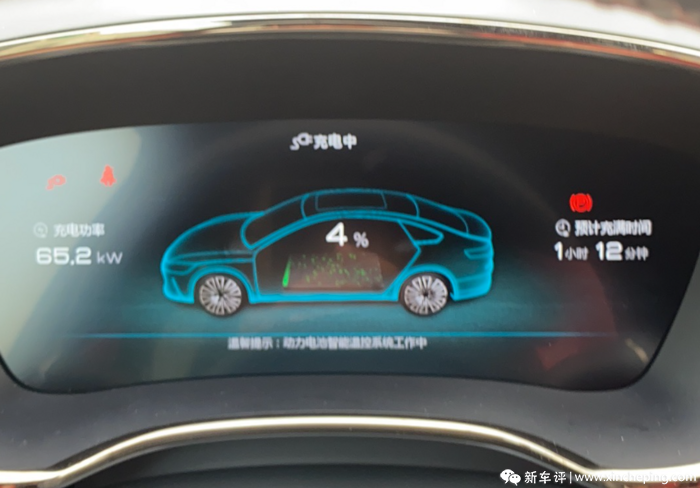 完成了完整的续航测试之后,就是充电测试。之前了解到的资料显示30%-80%的充电时间仅仅用时25分钟。但由于这次测试时间比较赶,再加上这个充电的条件需要比较新的快充桩,所以并没有体验到。但是在一般的快充桩,汉EV的充电时间也非常的快。从0-100%的充电时间仅仅用时1h15min。