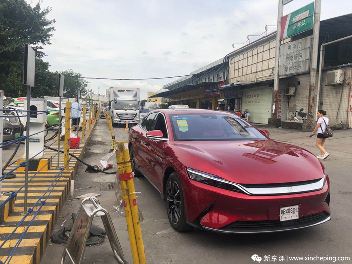 还好目前佛山的充电站建设非常完善,距离小桔200米就有另一个快充站,不需要注册即可充电。但是充电到最后我又遇到了另外一个问题,这台车只能充电到98%。在我换过多个多个充电站之后,确认是车的问题。再咨询比亚迪官方人员,得到的回复是这台车因为是试装车的问题,电池容量确实小一些,但是并不妨碍其他的性能。得到肯定的答复之后,我便开始今天的测试。