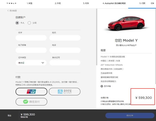 首先是基础的选装,Model Y一般来说都会选择车漆,毕竟白车漆太大众化,我们随便选一个颜色9500元(红色需要18900元),19寸轮毂确实不够大,20寸轮毂选装价格为18900元。然后来到车内,我们选一个特斯拉的经典黑白内饰9500元,目前7座尚未开放选装,选装价格为27800元。最后就是特斯拉的精髓所在Autopilot 自动辅助驾驶,也就是我们俗称的AP,选装价格为64000元,最终不含7座价格为599300元逼近60万元,如果包含七座价格就会达到627100元,60万买一台Model Y我相信除了土豪外几乎没人敢下手。