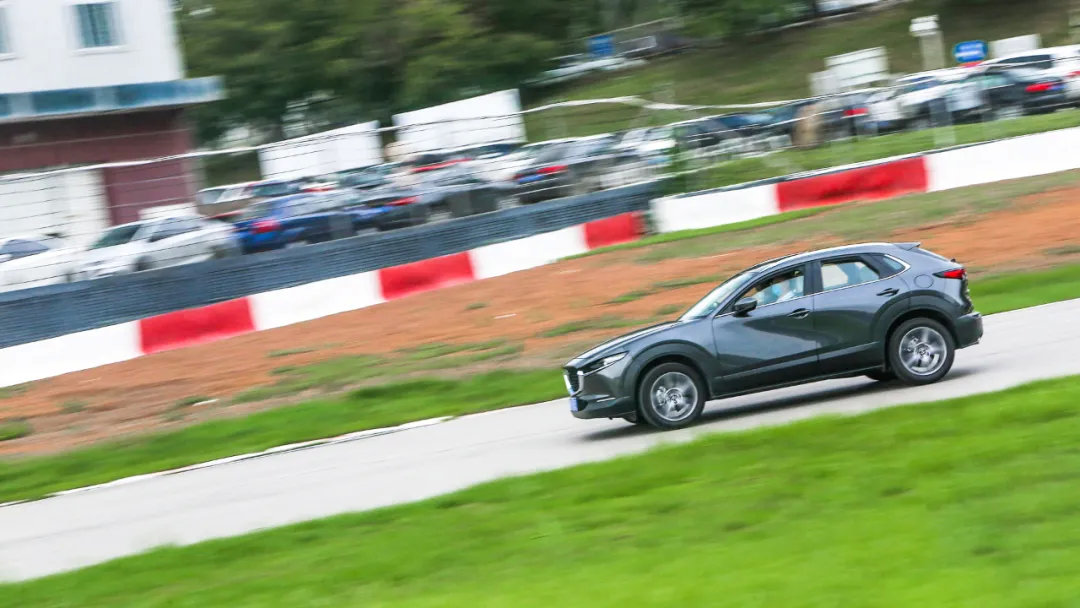 不过,你也不用为此感到遗憾,因为CX-30的底盘在操控功力方面,相比以往是得到了全面进步的。在赛道试驾过程中,厂家特意安排了一段虚拟的紧急变线,也就是要在短时间内多次变换车头方向。要知道,曾经的马自达车型,在面对这样高速紧急变线的环节时,大概率会因为车身重量的快速转移出现钟摆效应,也就是车尾会顺势出现打滑的情况。虽说这种车身姿态会提升驾驶乐趣,但对于绝大多数人来说,可能更多带来的却是恐惧吧。