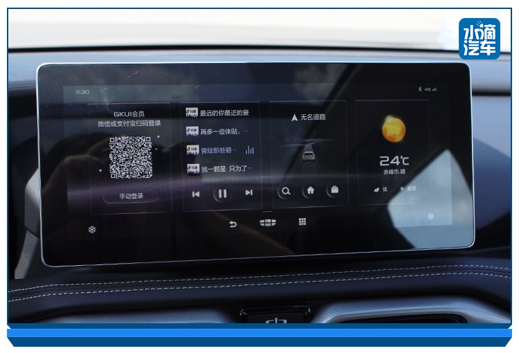 悬浮式屏幕的内搭载了GKUI吉客智能生态系统,通过网络即可享受导航以及娱乐功能。而且其还支持人机语音交互功能,只要动动嘴,它就能懂你并进行调节空调温度、开关车窗等操作。