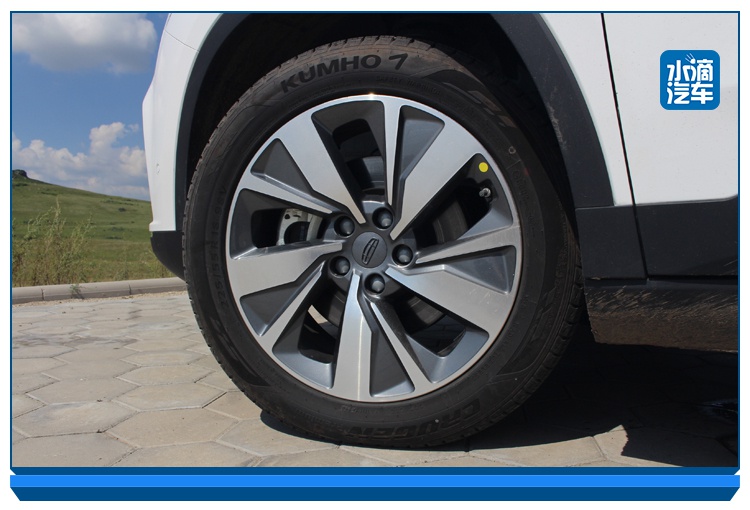 下方的轮胎规格为225/55 R18,品牌为锦湖轮胎,其尺寸较小以及轮眉凸起幅度并不大,因此侧面给人的感觉没有那么硬。