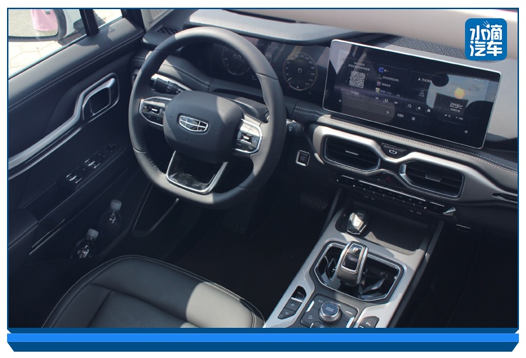 吉利豪越的内饰延续了家族的设计,选用了双12.3英寸的液晶仪表和多媒体屏幕,下方为物理按键的空调调节区域和电子挡把。用料方面也比较厚道,在能够直接触及到的地方均为软质材料,给人营造出一种越级的体验。